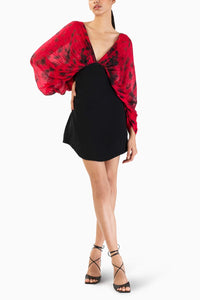 Crafted in hand dyed and solid silk, the mini dress is tailored with an inside silk bodice, spaghetti straps and flared skirt. Features hand pleated sleeves and a low V-neckline.