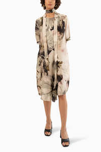 Embrace elegance with our scattered petals Chanderi asymmetrical dress. This exquisite piece seamlessly blends traditional craftsmanship with contemporary design.