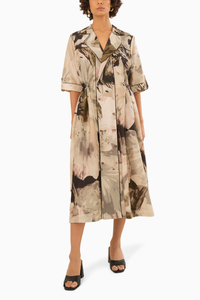 Scattered Petals Chanderi Side Gathered Shirt Dress