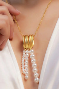 This is not your usual pearl necklace as we redefine pearls with truly modern aesthetics in the form of a 22kt gold plated pendant necklace inspired by an oyster inspired motif and dressed with pearl string drops with pearls of different sizes. It’s eclectic, unusual, lightweight and interesting making it just perfect go-to and travel accessory. You can finish the look with matching earrings from the collection for a coordinated look.