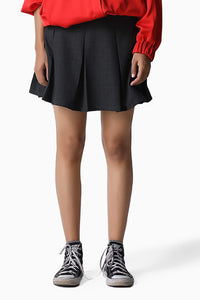 Mini skirts for days. The School Skirt cut in a suiting features a pleated high waisted skirt with inbuilt shorts. It is mid thigh length and closes on the side with a concealed zipper. Wear yours with a shirt tucked in or a tee for easier days.