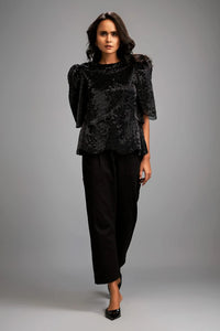 Sculptural Black Shoulder Shimmer Co-ord Set