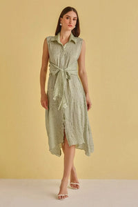 Featuring the Sea Green Gajji Silk Bandhani Dress by 29 India's Sunehri collection. Crafted in hand-tied and dyed Gajji silk Bandhani by artisans in Kutch, this backless tie-around dress is styled with fine detailing for a fluid, elegant festive statement.