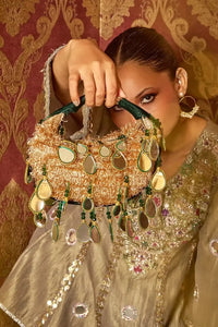 A boat bag like no other — drenched in kinari lace, cascading with hand-cut mirrors and radiant shimmer. The Seher bag is your go-to sparkle for mehendis, sangeets & festive nights. When your bag is a celebration on its own.