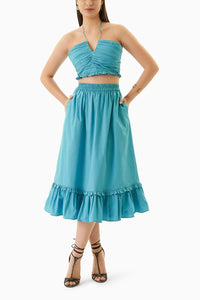 The Seine set consists of a fitted bandeau top with a halterneck tie, and an easy-to-wear