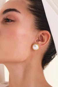 Featuring the 16mm Senora Studs by Anaash, these elegant earrings are crafted from manufactured hypoallergenic brass with a 22k gold plating. They showcase a white pearl of 16 mm size and come with a secure push-back closure for comfortable wear.