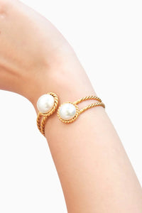 The Senora Cuff features a stunning white pearl, set in hypoallergenic brass and plated with 22k gold. With its adjustable design, this cuff offers a perfect fit and a sophisticated, timeless elegance for any occasion.