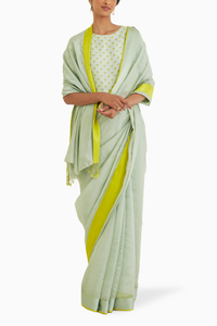 Handwoven with love and care, the Serendipity Seafoam saree is crafted in exquisite handwoven mulberry organza silk in a serene seafoam hue that exudes an aura of elegance, perfect for the modern-day woman.