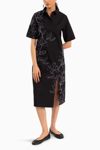 This midi dress has a neat polo collar with cropped sleeves that gives a preppy feel and close fit. Front slit for ease of movement and a button closure.