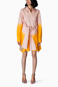 Featuring Shaded Orange and Salmon Pink Hazel Dress by URAIB. Elevate your style with this cotton poplin ensemble, harmonizing vibrant hues for a chic and comfortable fashion statement.