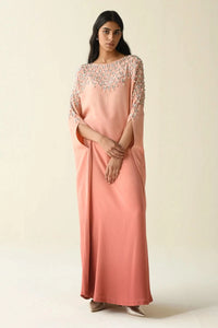 Embrace elegance with the Shaded Pink Kaftan, featuring exquisite pearl and bead embellishments. This stunning blend of modern chic and traditional charm makes it perfect for weddings, celebrations, and special occasions where you want to shine.