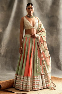 Composition: Bodice- Linen, Bottom- Linen, Dupatta- Organza Color: Peach And Mint Components: 3 Product Code: SVEITRHITRH1006MISHRIT