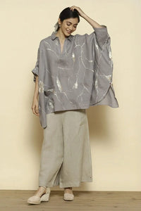 Featuring the Shake The World Square Ash Co-ord Set in 100% linen, this comfort-fit set includes a stunning antifit top adorned with abstract prints that evoke shadows and shimmer, paired with matching pants for a stylish and relaxed look.
