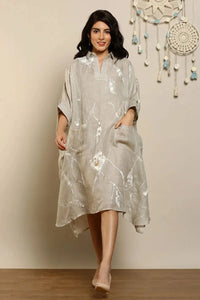 Featuring the Shake The World Square Dress in 100% linen, this comfort-fit dress showcases abstract prints that whisper of shadows and shimmer, offering a striking and elegant silhouette perfect for stylish occasions.