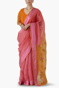 Handwoven with the finest organza mulberry silk, our Shared Stories Jamdani saree is a celebration of craftsmanship. The delicate rose-pink hue evokes grace and femininity, while the intricate floral jamdani design adorns the palla of the saree, reminiscent of a garden in full bloom.