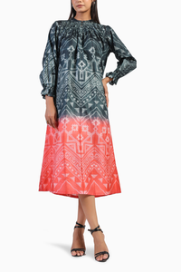 Featuring the Black and Red Shibori Neck Pleat Dress, this piece is a true delight for the festive season. The striking yet subtle color combination of black and red is ideal for the upcoming weddings and celebrations. The dress is designed with elegant neck pleats that add a sophisticated touch, while the practical side pockets offer both style and convenience. This stunning dress is perfect for making a memorable impression at any festive event.