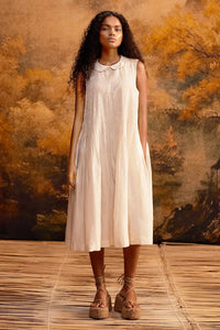 Effortlessly elegant, this shibui stripe ruching dress combines understated charm with meticulous craftsmanship. Featuring playful yet sophisticated ruching detail, its breezy silhouette ensures all-day comfort. With a harmonious blend of textures and accents, this versatile piece seamlessly transitions from day to evening