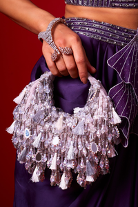 The Nano Boat Bag exemplifies meticulous craftsmanship with its exquisite design, featuring a detailed arrangement of stone and crystal beads that radiate opulence and charm. The all-over stone work enhances its glamorous appeal, ensuring it stands out as a distinctive accessory for any special occasion. Handcrafted with genuine artistry, this bag is available in elegant peach, sea green and ivory hues, adding a touch of sophistication to your ensemble.