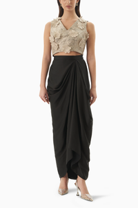 Fabric: Applique Tissue With Satin Color: Silver and Black Fit: Fitted Components: 2 (Top And Skirt) Product Code: SVERENARJSV07