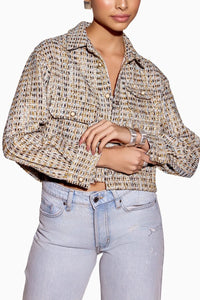 Silver Tweed Full sleeve Jacket , detailing attached pockets with buttons