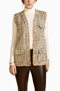 Layer this tweed jacket over high-waisted denim for a modern take on old-world sophistication.