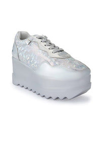 These wedge sneakers are designed to join you on the dance floor under the spotlight of a thousand disco balls. Their comfortable sole will be your companion from AM to PM, watching you dance the night away. Feeling at ease while also looking like a million bucks is a luxury, we want you to experience with these shoes. They come in a striking silver with a tinge of retro. Wear them and shimmy your way into the disco era!