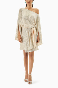 This timeless dress from Kangana Trehan is a suitable choice for any evening occasion. This design is crafted in silver georgette fabric and hand embellishment work comes with matching satin belt. Accessories with a statement clutch bag and heels to accentuate the look.