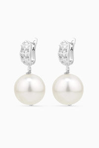 These Glam Hoops earrings feature beautiful white pearls, set in hypoallergenic brass and plated with 22k gold. Their chic design combines elegance and modern flair, making them the perfect statement piece for any occasion.
