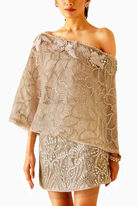 Featuring Mirrorwork Drop Shoulder Cape by Twenty Nine India's Bahar collection. This Cape is embellished with Mirrowork and 3D floral embroidery and can be worn as a Boat Neck Top, Strapless Top or an Off Shoulder Top.