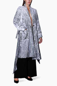 Fabric: Sequins Color: Silver Sequins Fit: Relaxed Components: 1 Product Code: SVESWATESSCOAT11