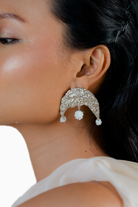 These jewelry pieces are meticulously handcrafted in brass and plated with nickel. To maintain your pieces, kindly allow your perfume and hairspray to fully dry before wearing your jewellery. Store your pieces in the provided packaging or any soft cloth bag.