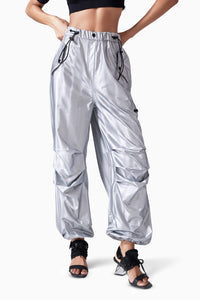 Introducing our Silver Stride Active Joggers, designed for ultimate comfort and style. These voluminous parachute pants feature an elastic waistband and bungee cord at the hem, allowing for a customizable fit and effortless movement. Adorned with the Cilvr signature metal monogram, they add a touch of luxury to your athleisure ensemble. Perfect for workouts, lounging, or casual outings, making them a versatile addition to your active wardrobe.
