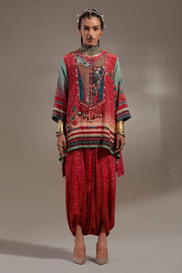 Sindoor Anka Printed Mitra Short Kurta With Drape Trousers