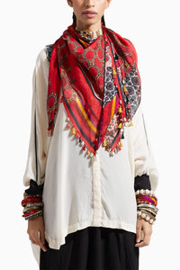 Featuring the Sindoor Bagh Rumal - a printed sheer silk dupatta that adds elegance to any ensemble. Complete with charming tassel details for a touch of flair.