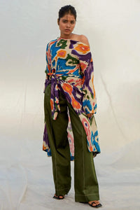 A dance of colours on our One shoulder top. the top has a side slit with a belt.ÂÂ