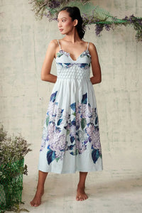 The Sky Blue Hydrange Corset Dress is a stunning and elegant garment that combines the delicate beauty of hydrangea blooms with the timeless allure of a corset silhouette. Featuring a sky blue hue and intricate hydrangea prints, this dress exudes femininity and charm. The corset detailing adds structure and accentuates the figure, creating a flattering and sophisticated look. Perfect for special occasions or evening events, this dress offers a touch of romance and sophistication.