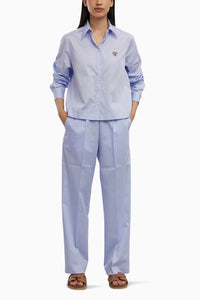 Sky Blue Swarovski Heart Crop Shirt with Loose Pants