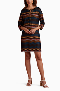 Elevate your style with our sleek knitted dress, crafted from a printed knit fabric. The keyhole neckline, adorned with delicate dori detailing in the front, adds a touch of charm and sophistication. Embrace a perfect blend of comfort and elegance in this uniquely designed piece.