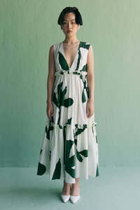 Step into elegance with our fitted dress crafted from soft organic cotton, featuring a beautiful ivory and green floral print. The dress is designed with charming gather detailing that flatters your silhouette, making it perfect for any occasion. Embrace comfort and style in this eco-friendly piece that adds a touch of sophistication to your wardrobe!