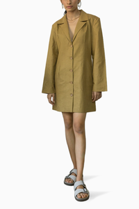 This modern blazer in a dress form is key for the upcoming season. Made from a hemp cotton blend, it's expertly tailored with a peak lapel, lightly padded oversized shoulders in a slim, single-breasted silhouette with darts to cinch the waist.