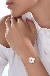 Mother of Pearl Evil Eye chain bracelet with diamonds in 14KT Yellow Gold are featured from our Everyday Luxury Collection, which is easy to wear and can take you from day to night.