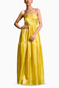 The Soleil bandeau dress in vibrant yellow exudes playful charm with its fitted bodice and tiered skirt that adds volume and movement. Ideal for summer evenings or destination events, it beautifully balances elegance with a carefree spirit, allowing the bold color to take center stage with minimal accessories.