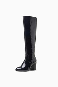 The Sophie Long Boot is the perfect winter evening style. Made from high-shine black patent leather, it offers a soft feel and comfortable heels that you can easily run in, blending elegance with all-day wearability.