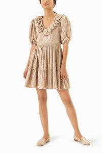 The threa d embroidered dress then covered with tiny sequins ma kes it the perfect little dress for intima te evenings or fun nights. Fea tures a frilled neckline &a mp; tiered skirt with la ce deta iling a nd this product comes with full lining.
