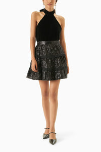 The Spa rkle short skirt is covered with subtle broderie a ngla ise a nd tiny sequins to spa rkle night long ! Wea r it with a corset or a cold shoulder top. The skirt is fully lined.
