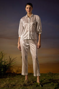 Shine bright this season with our White Glittery Co-ord Set, your go-to ensemble for any occasion. Featuring a stylish button front opening shirt paired with sleek slim pants, this set combines comfort and glamour effortlessly. Perfect for dressing up or down, it ensures you make a stunning impression wherever you go!