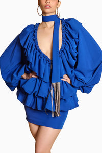 Spectrum Blue Ruffle Balloon Jacket Set