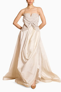 Featuring Spectrum Ivory Parachute Gown by Siddartha Tytler's Spectrum Collection. This ivory taffeta gown features a stunning crystal mesh corset and a delicate bow, creating a dramatic, voluminous silhouette. A perfect blend of glamour and elegance for a show-stopping look.