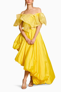 Featuring Spectrum Yellow Bauble Skirt by Siddartha Tytler's Spectrum Collection. This yellow taffeta bauble skirt features a voluminous, sculpted design that creates a dramatic, eye-catching silhouette. The luxurious fabric and bold design make it the perfect statement piece for a sophisticated and stylish look.