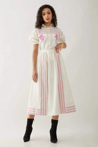 Fabric- Cotton Satin Color- Off White, Orchid Farm, Mosiac Fit- Relaxed Components- 2 Product Code- SVESNOBSN-DR-SPR-FM-01